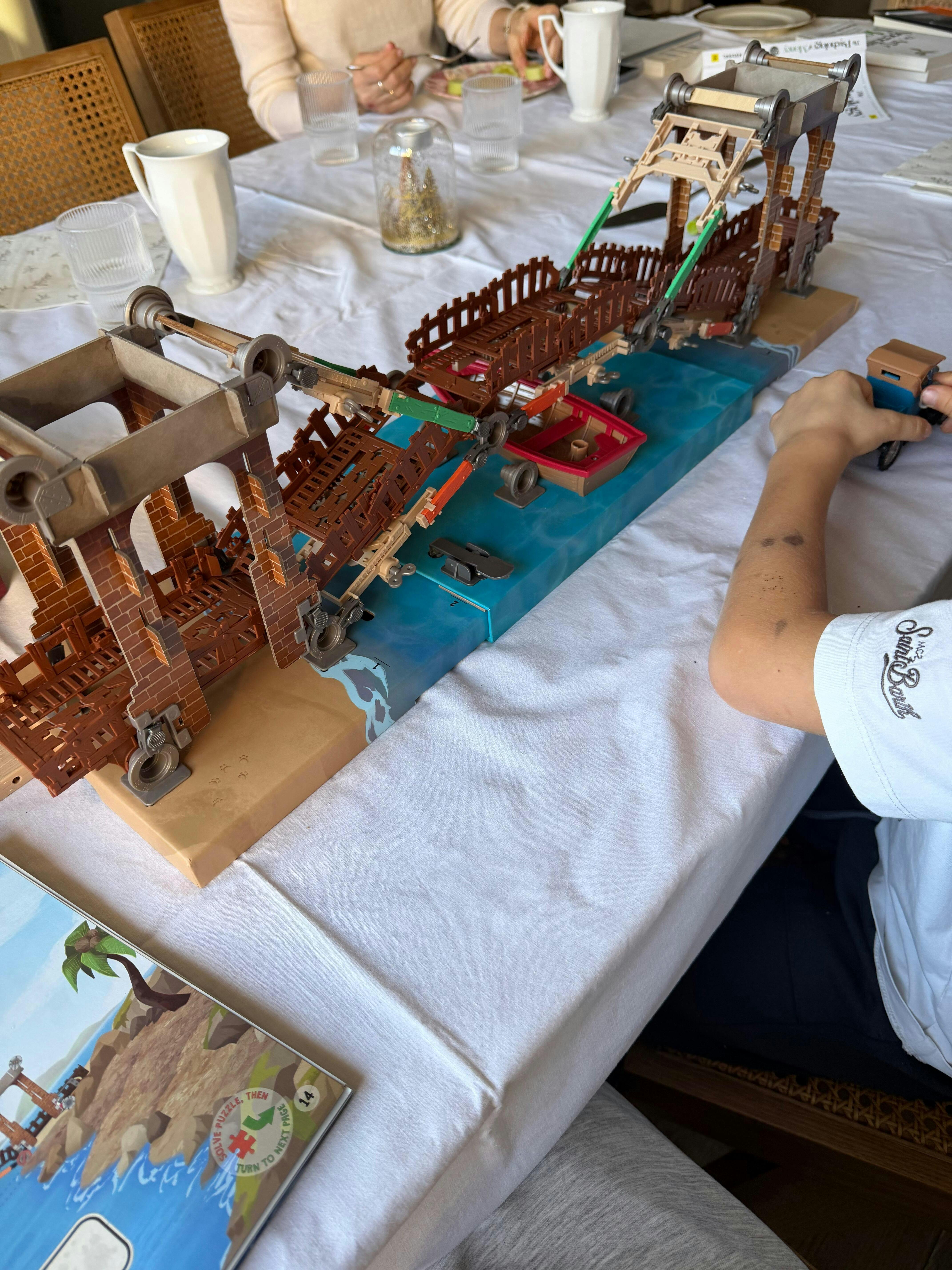 Disaster! The bridge collapsed! But don’t worry, the magic of Bridge or Bust means you can simply lift the bridge, snap the beams back into place in seconds, and get right back to testing your next bold design. And when your bridge holds and the flags go up, it’s off to the next island!